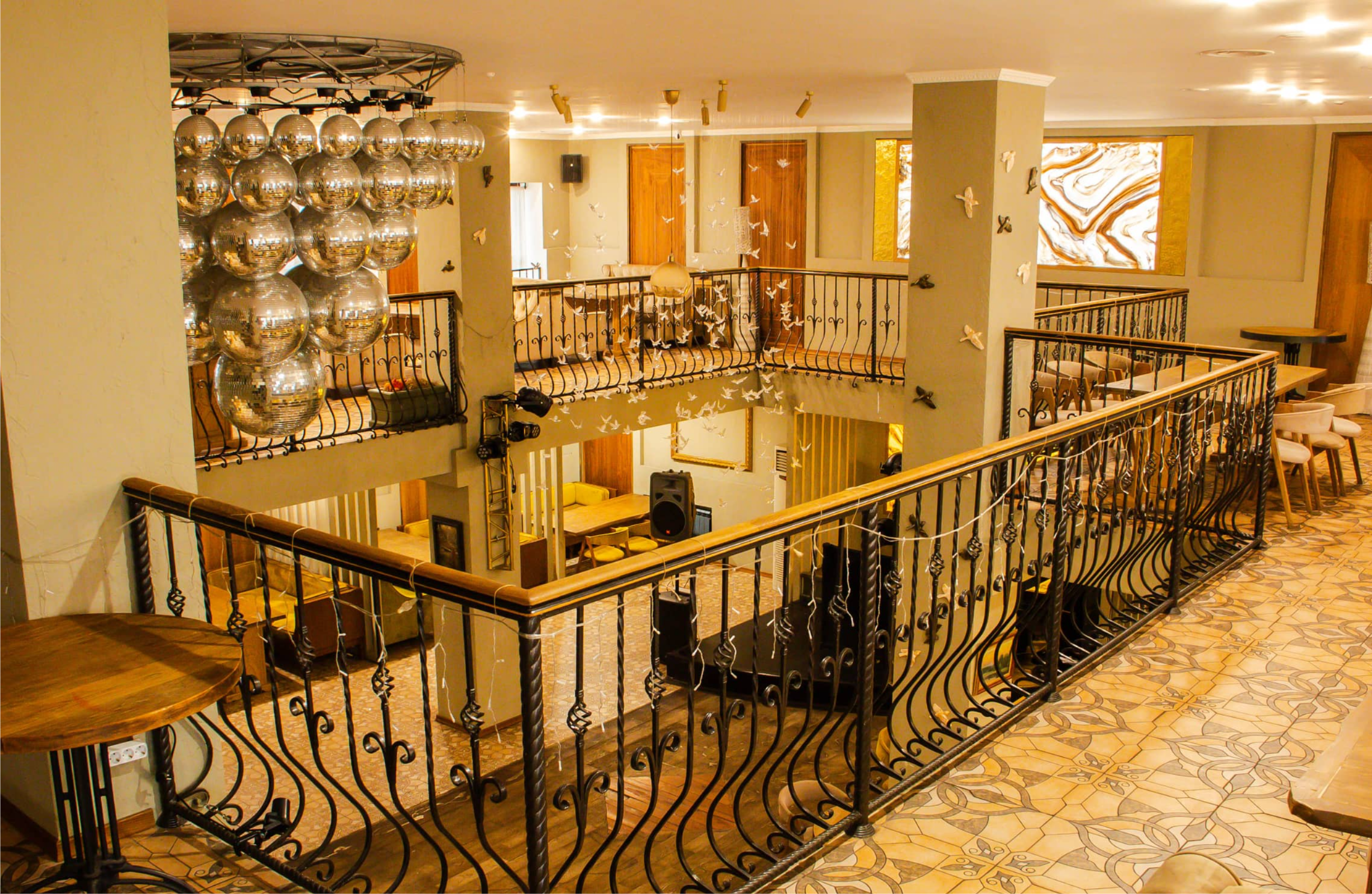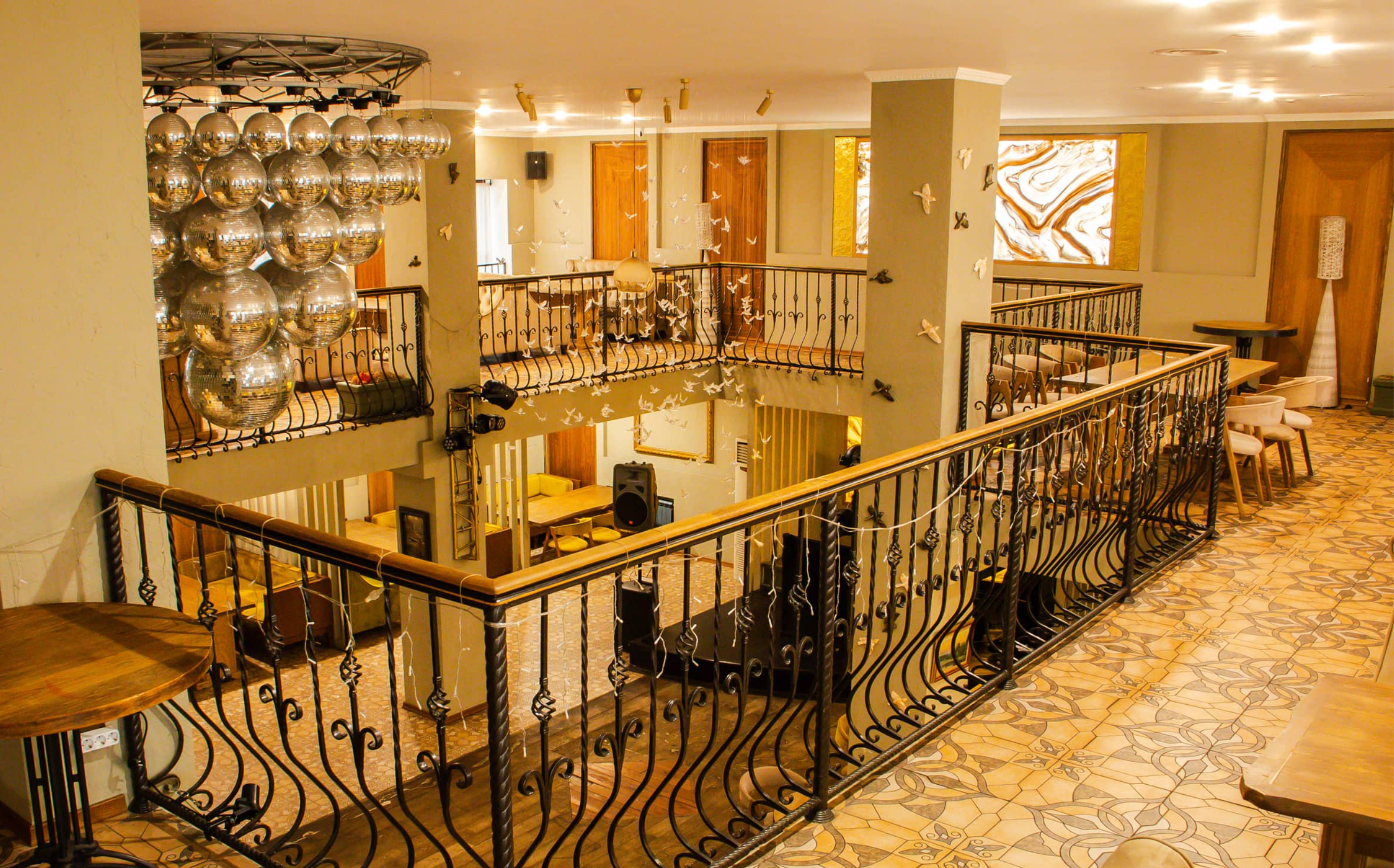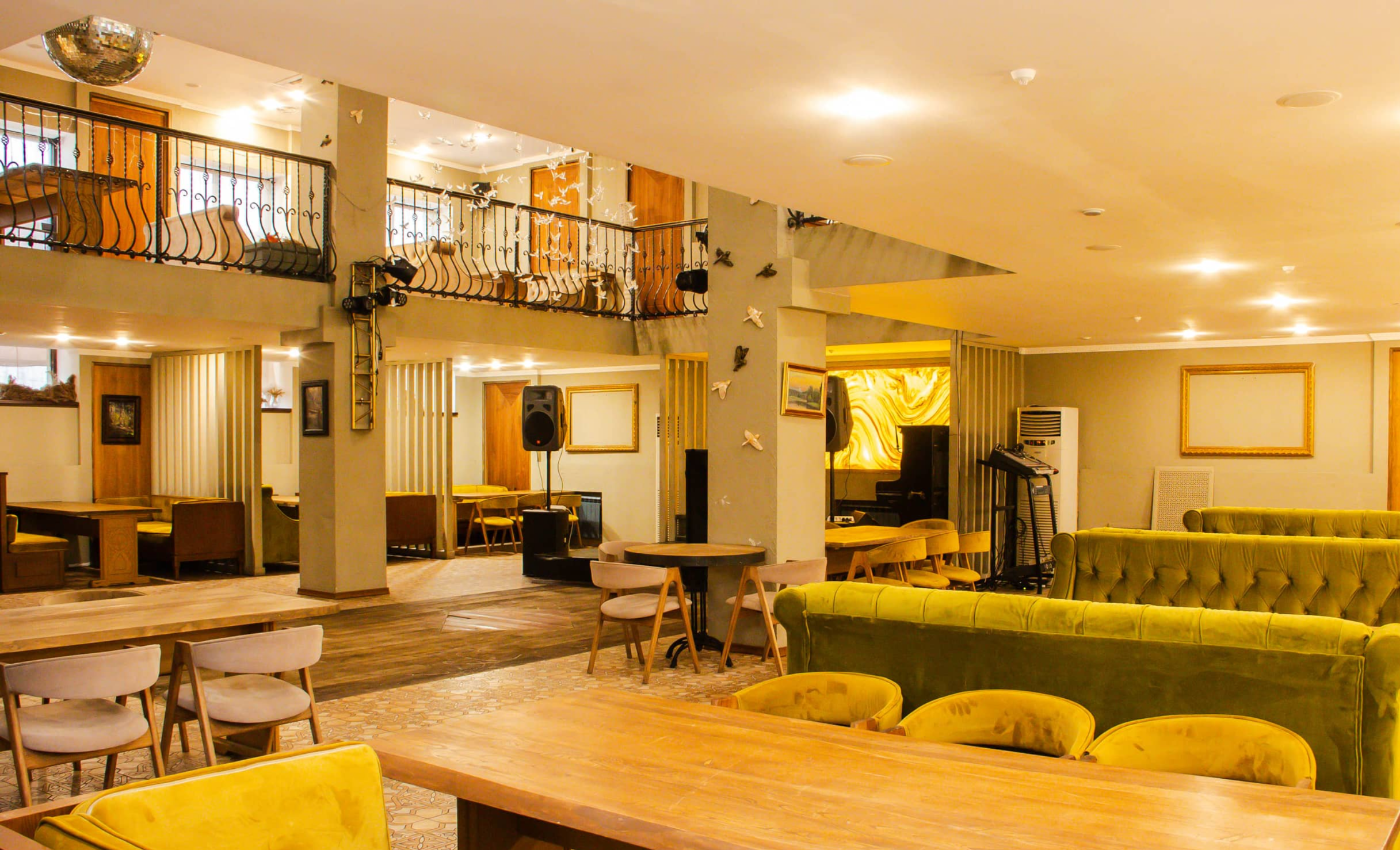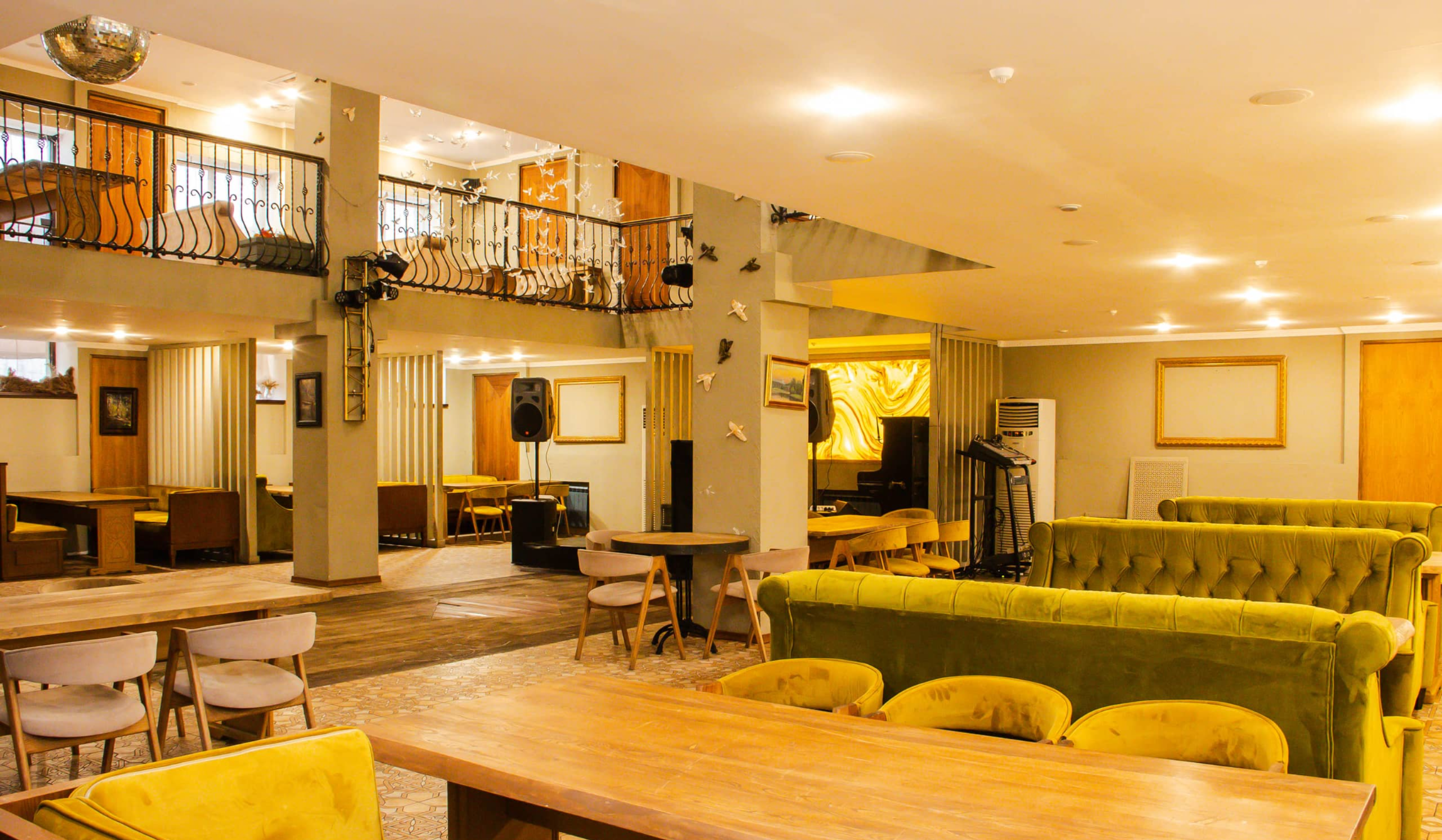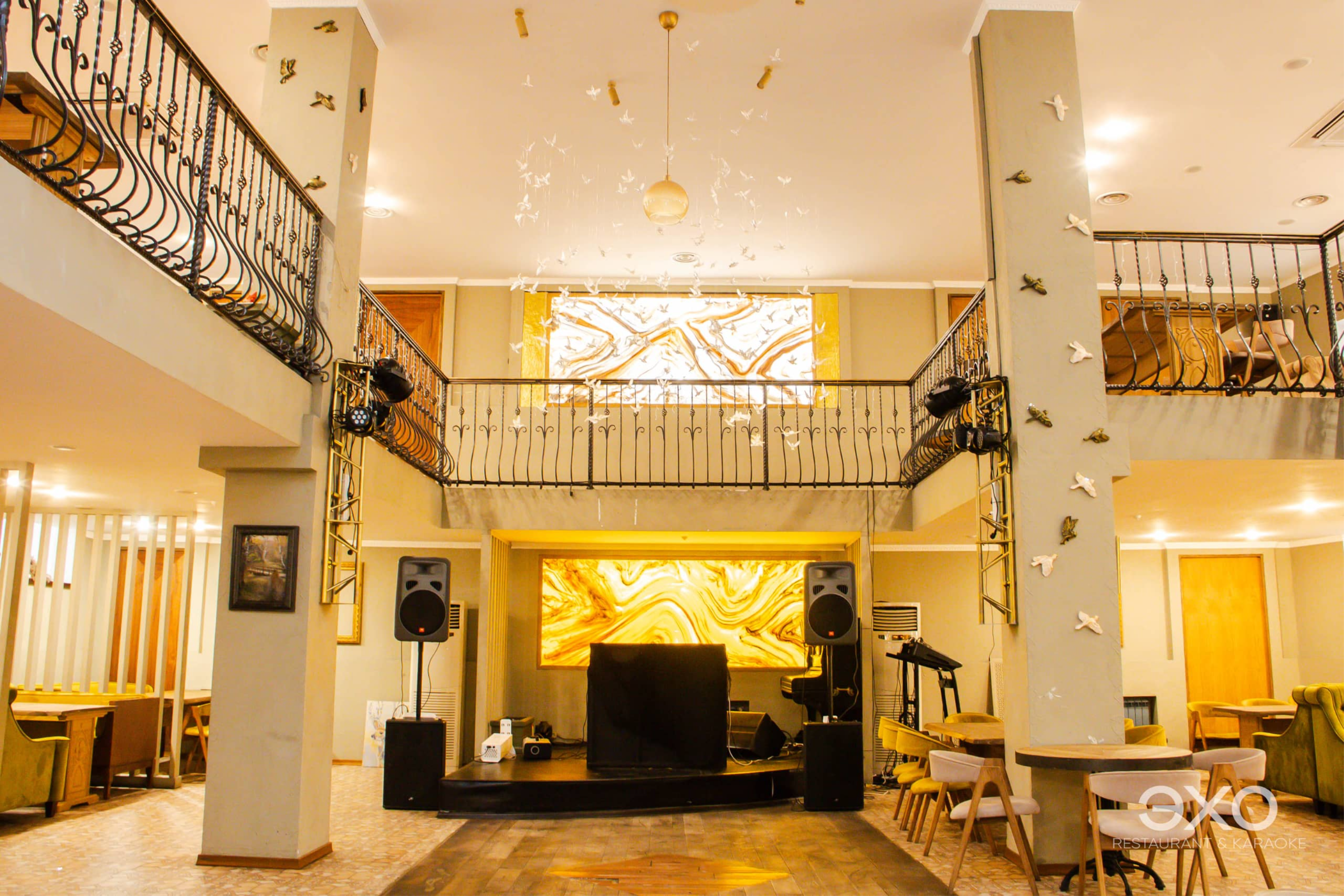 Элегантный двухъярусный зал с просторным балконом, идеально подходящий для банкетов, свадеб, юбилеев и корпоративных мероприятий. Просторная сцена и профессиональное звуковое и световое оборудование позволяют проводить концерты, шоу и интерактивные программы.